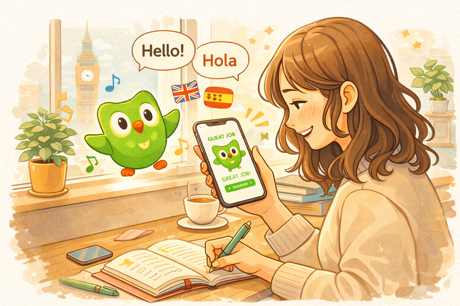 ・Duolingo どちらの日も3、4レッスン